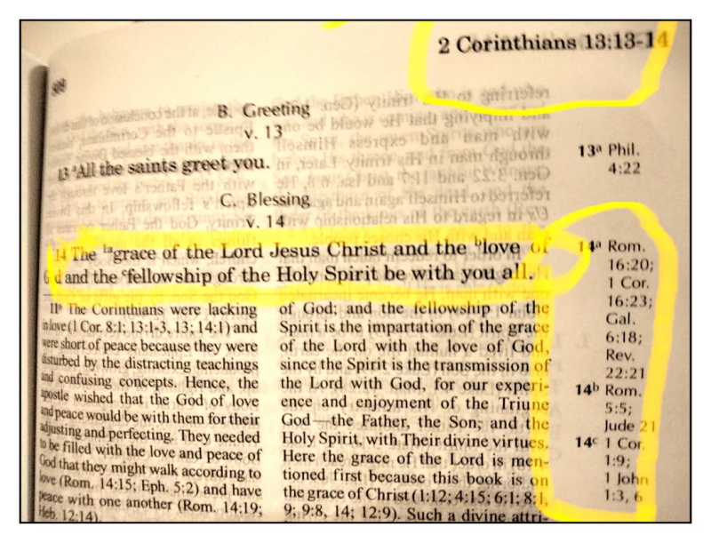 Such a divine attribute of three virtues --- love, grace, and fellowship and such a Triune God of the three divine hypostases --- the Father, the Son, and the Spirit --- were needed by the distracted and confused yet conforted and confused yet comforted and restored Corinthian believers.