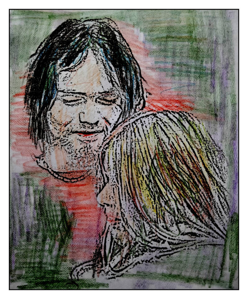 In this photo-drawing my eldest brother Peter and his then girlfriend Klaske. But who, at the time Peter committed suicide, was in Paris with her girlfriend and wanted to have fun with boys in Paris. The same thing she did after Peter's suicide, but with my other brother Carlo. This was a very strange and confusing situation for me. But also an important story that actually took place in my family and without any further note being made of it. "LOVE" can therefore appear in the body in a very insignificant and unashamed way in life. And people no longer want to let that play a role. Being able to actually face and experience this has certainly shaped my image. To accidentally reveal this to my then mother-in-law Leni Spekman, but then concerning years of cheating on her own husband, the man she had still wanted to stay with at the time, with disastrous consequences that this had had for her for years in a row. , turned out to be the striking arrow why I had to get as far out of her sight as possible. Something that she had undoubtedly really succeeded in, again with many consequences that resulted from this. Man is a strange creature.
