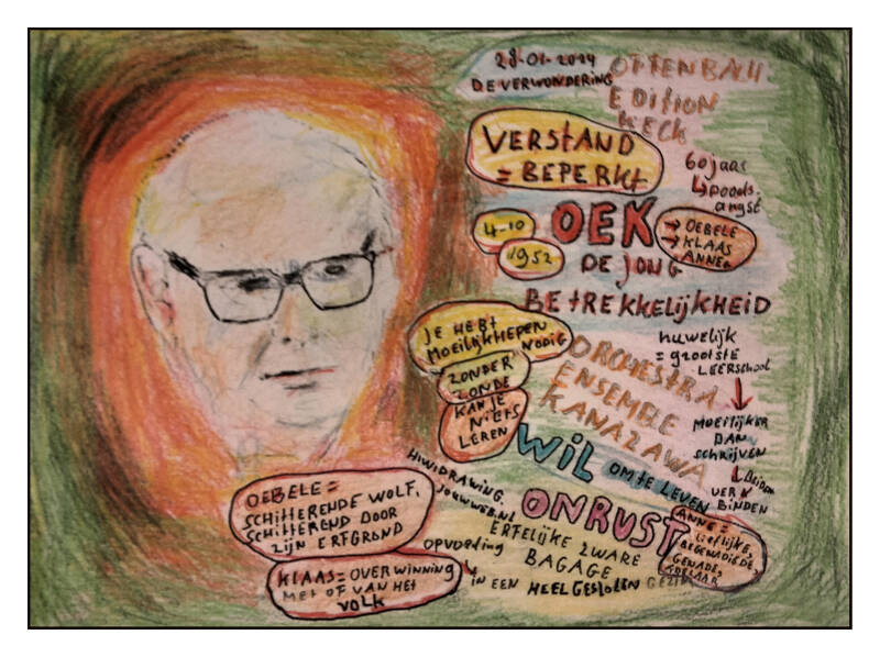 I think it's nice that Oek sees the limitations of the mind. This of course also includes the relativity of man. I also find the statement: "You need difficulties." or “Without sin you cannot learn.” I think these are really great statements. There is an important WILL to live, but also an unrest. Oek talks about a heavy hereditary baggage that he has acquired through his upbringing. An upbringing in actually a very closed family.