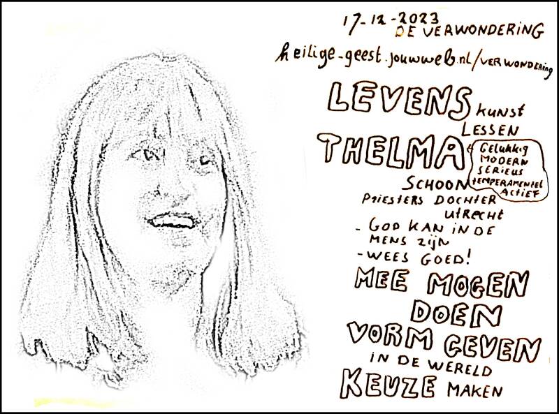 I make HIWI drawings every week, for the Dutch television program "De Verwondering" on Sunday morning. (hour 08:30 AM) I often do this before I travel to Delft (by bike) or to Leiden (by train). Here I am going to attend a church service of the local church.